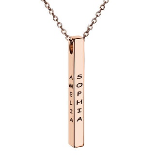 14K Rose Gold Plated Vertical 4-Sided Engraved Family Name Necklace