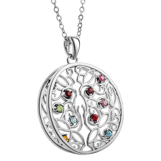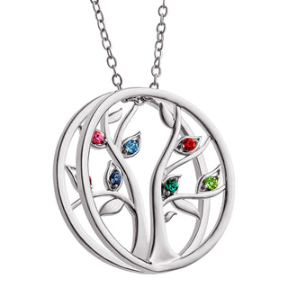 Personalized Birthstone Tree of Life Necklace- Silver Plated