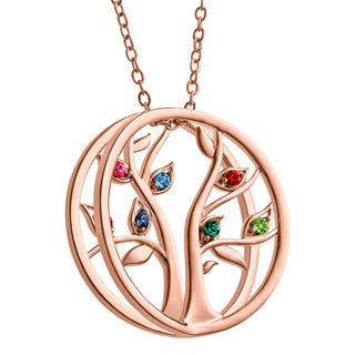 Personalized Birthstone Tree of Life Necklace- 14K Rose Gold Plated