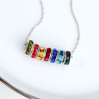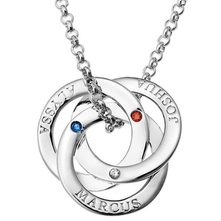 Silver Plated Interlocking Rings with Birthstones Name Necklace