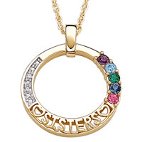 18K Gold over Sterling SISTERS Birthstone & Diamond Circle Necklace