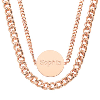 14K Rose Gold Plated Vertical 4-Sided Engraved Family Name Necklace