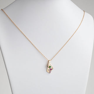 14K Rose Gold Plated Family Initial and Birthstone Cube Necklace