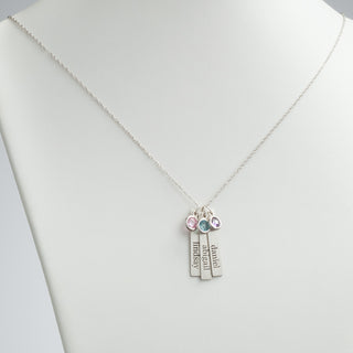 Sterling Silver Brushed Engraved Name with Birthstone 3 Tag Pendant