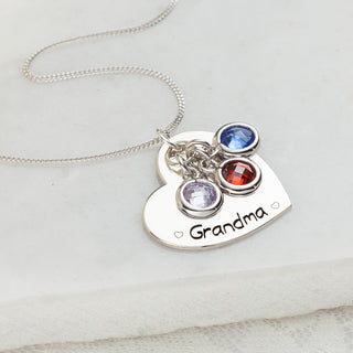 Sterling Silver Family or Sisters Name and Heart Birthstone Pendant