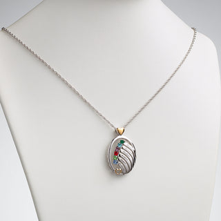 Two-Tone Oval Name and Birthstone Hearts Pendant