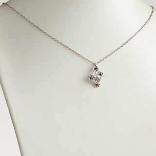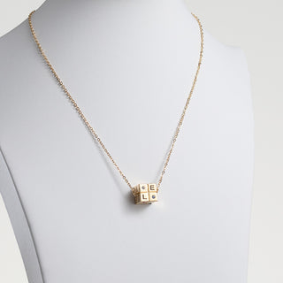 14K Gold Plated Family Initial and Birthstone Cube Necklace