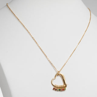 14K Gold over Sterling Family or Sisters Name and Heart Birthstone Pendant