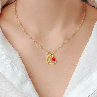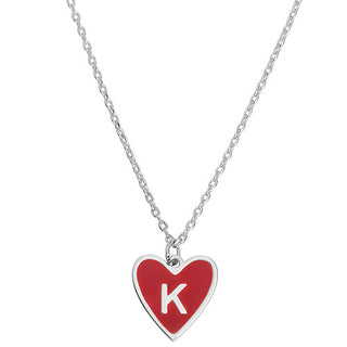 Couple's Initial and Enamel Heart Charm Cluster Necklace