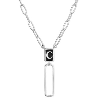 Vertical Birthmonth Enamel Initial Paperclip Chain Y-Necklace