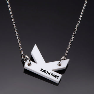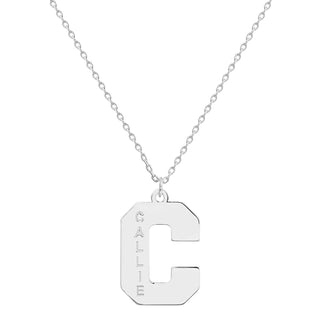Sterling Silver Varsity Initial with Engraved Name Necklace