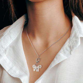 Silver Multishape Engraved Charm Cluster Necklace - 3 to 5 Initials