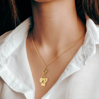 Gold Multishape Engraved Charm Cluster Necklace - 3 to 5 Initials