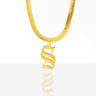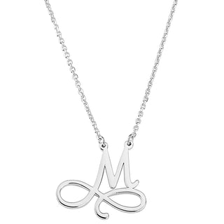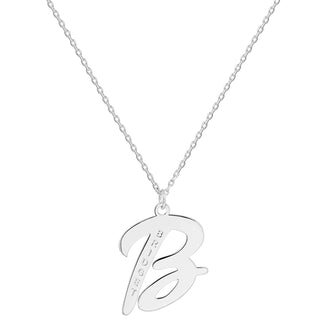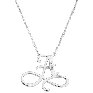 Sterling Silver Retro Script Initial with Engraved Name Necklace