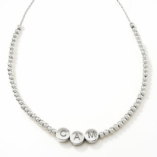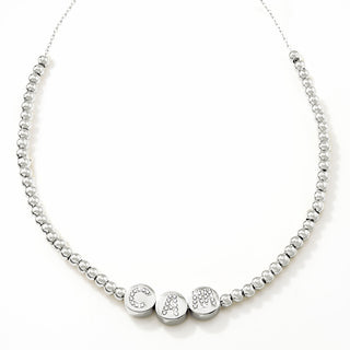 Pave CZ Initials Slider Charm Pave Initials Station Beaded Necklace