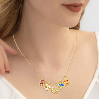 Gold Plated Enamel Birth Month Flower Charm Necklace