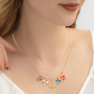 Rose Gold Plated Enamel Birth Month Flower Charm Necklace