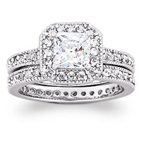 2.5 Carat Platinum Plated Sterling Silver CZ 2-Piece Wedding Ring Set