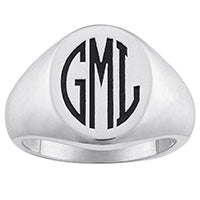 Sterling Silver Men's Laser Engraved Oval Monogram Signet Ring