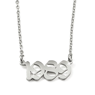 Sterling Silver Vertical Year Plaque Necklace - Old English