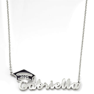 Graduation Name Plaque with Enamel Grad Cap Freestyle Class/ Graduation Necklace