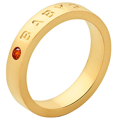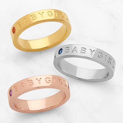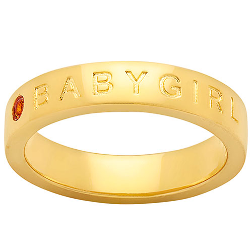 Delight your baby girl with this on trend ring from our Empowerment collection! 14K Gold plated band is engraved with BABYGIRL and features a sparkling birthstone preceding it. Select a birth month, favorite color or other meaningful hue for the stone to create a custom look to love. Update your own jewelry box or surprise someone special!