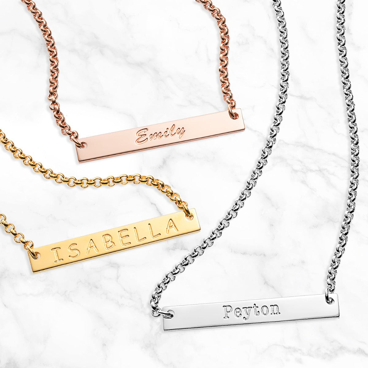 14K Gold Plated Engraved Name Mini Bar Necklace