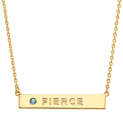 Rock a fierce attitude with this cool necklace from our Empowerment collection! Bar design features the word FIERCE preceded by a shimmering birthstone of your choice. Update your own jewelry box or give as a special gift to a friend with a wild side! Comes in glittering Gold, stunning Silver or radiant Rose Gold.