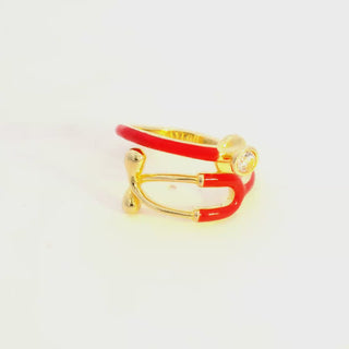 Gold Plated Personalized Birthstone & Enamel Stethoscope Wrap Ring