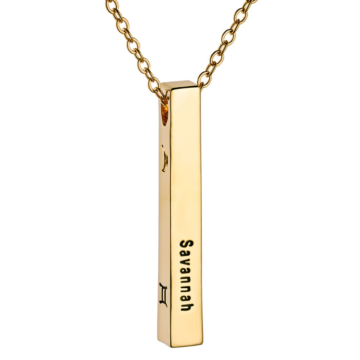 14K Gold Plated 3 Zodiac Symbol and Name 4 Sided Bar