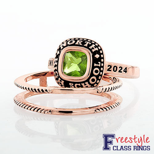 Ladies' 14k Rose Gold Plated Freestyle Class Ring with Jacket