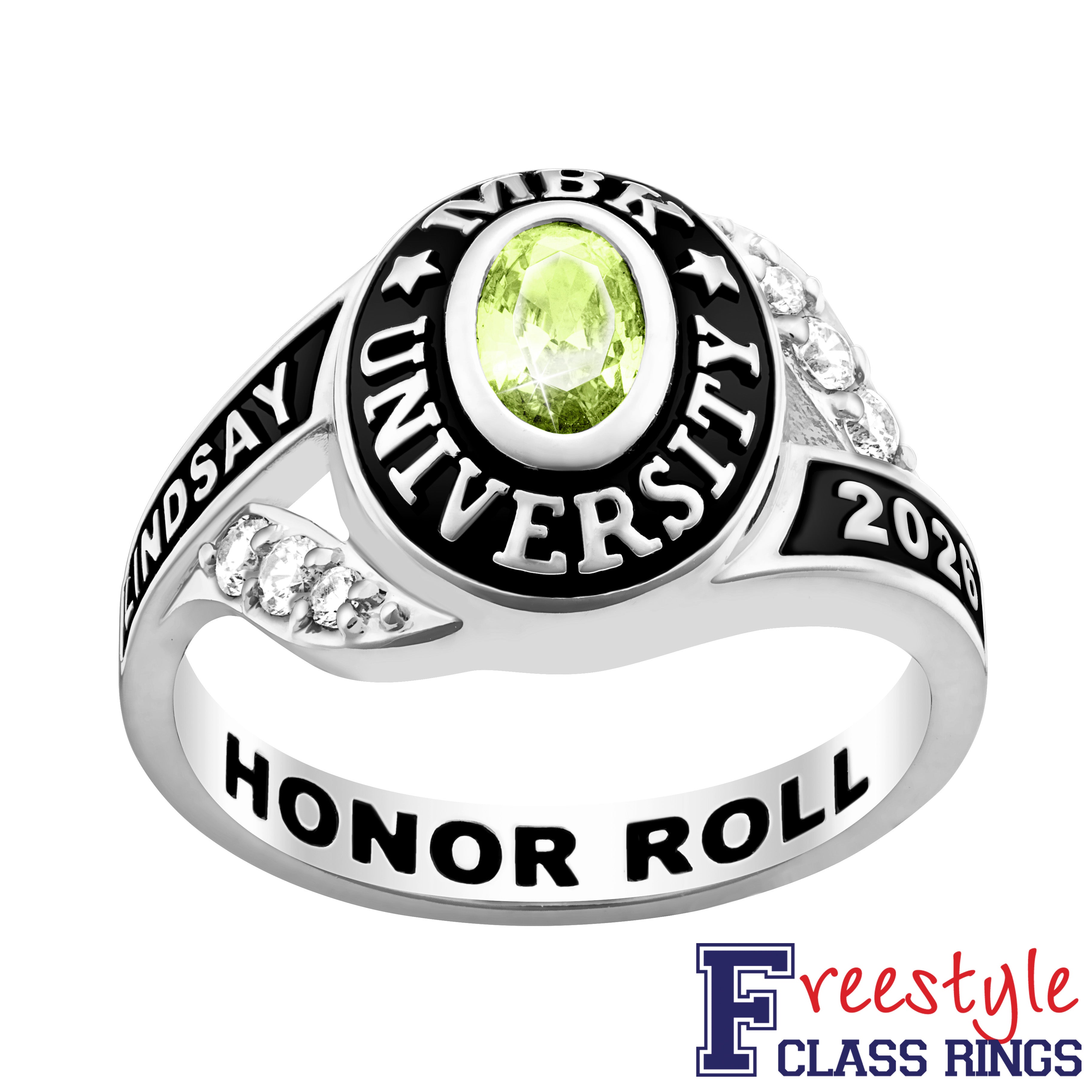 Ladies Class Ring in Platinum Plated Celebrium With CZ