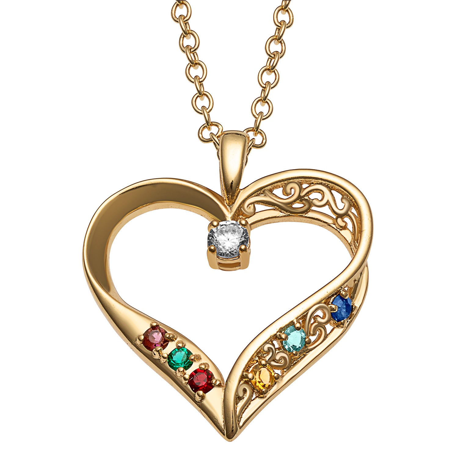 Line the curves of this beautiful Gold Plated pendant with a birthstone for each loved one she holds close to her heart and add hers to the center! Makes the perfect gift for her birthday or Mother's Day!
