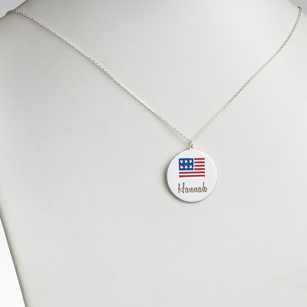 Perfect for election year, the Fourth of July, or any special occasion, this American flag necklace can be personalized with an engraved name along the bottom. Create a remarkable gift for the patriot in your life when you personalize this one-of-a-kind fashion accessory!