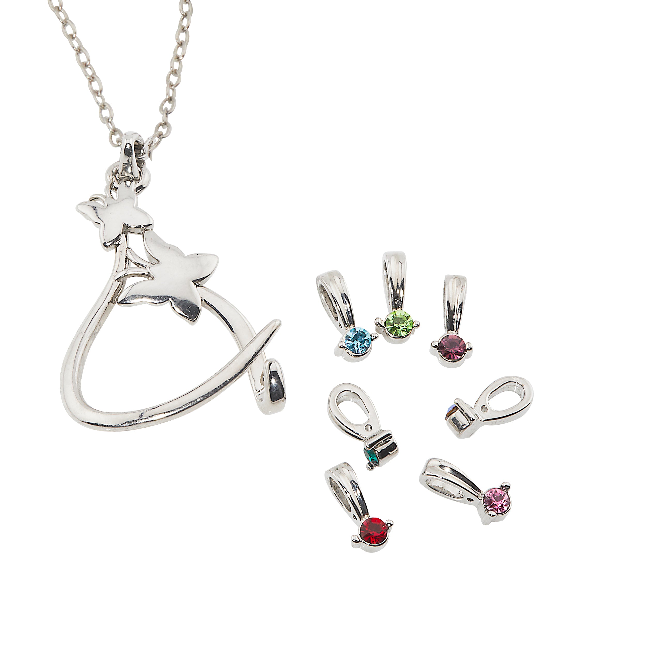 Flutter about wearing this stylish necklace that celebrates nature and family! A butterfly sits atop this pendant charm holder from our Secret Garden collection. Personalize with up to seven Genuine Crystal birthstone charms, one for every family member's birth month. This lovely necklace also makes a thoughtful birthday or Mother's Day gift for Mom or Grandma. Choose from three beautiful colors; gorgeous Gold, stunning Silver or resplendent Rose Gold.