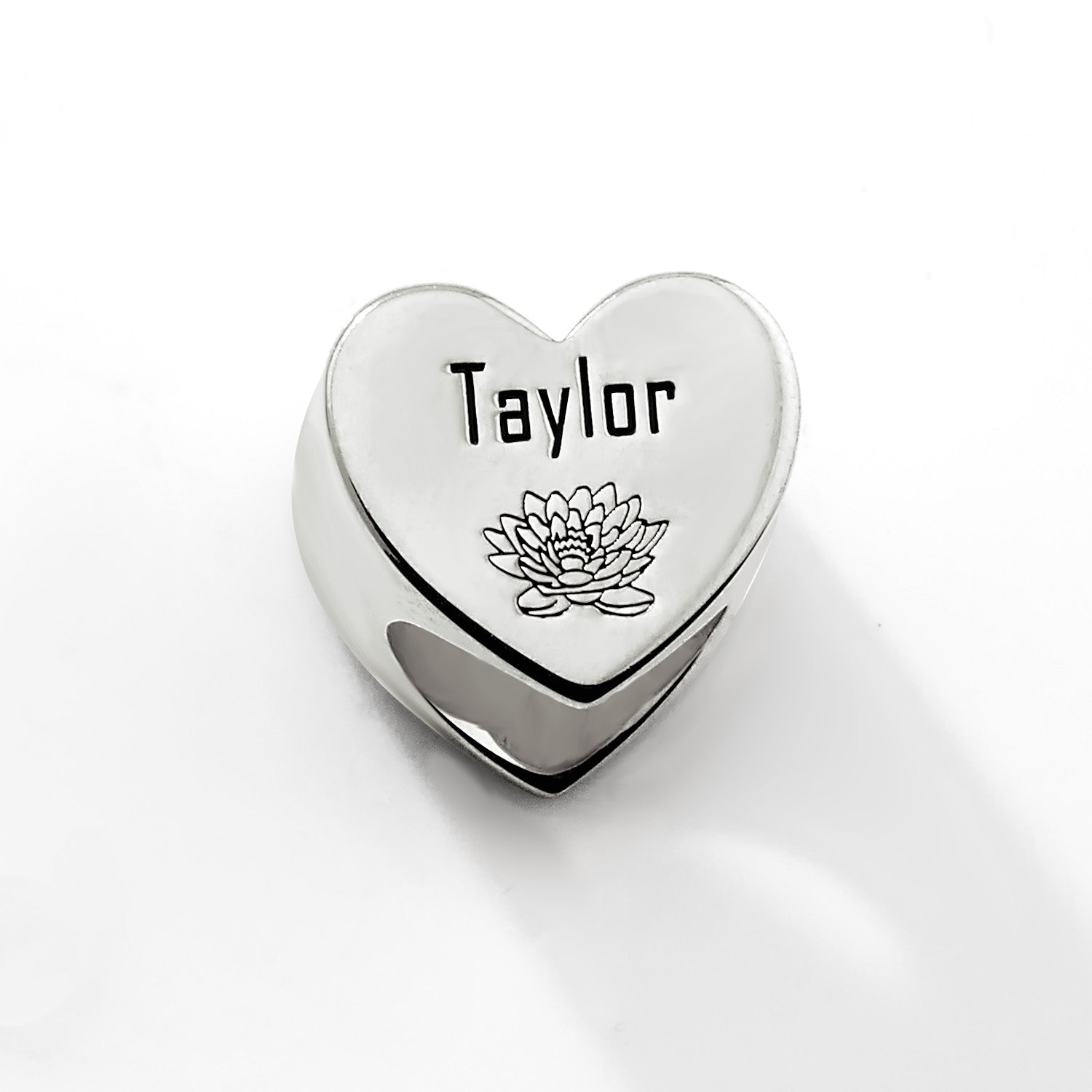 Add heart and meaning to your everyday essentials with our Personalized Heart Slide Charm, beautifully crafted for healthcare professionals. This sweet, compact charm features a heart-shaped design with two rows of custom engraving—a name, nickname, or word (up to 8 letters) in elegant script on the top row, and your choice of one of 12 symbolic flowers on the second row.