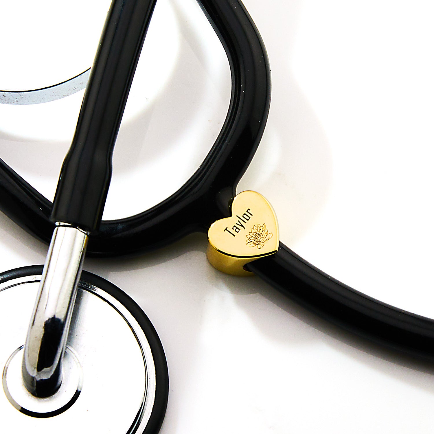 Personalized Heart Stethoscope Slide Charm – Silver, Gold & Rose Gold Plated