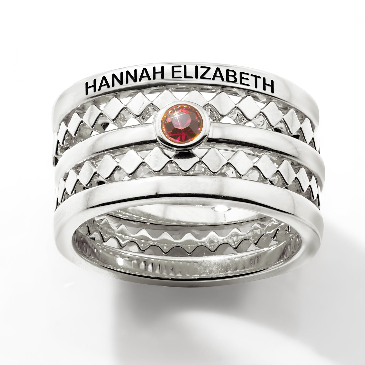 Silver Plated Engraved Birthstone Geometric Stackable 5 Ring Set
