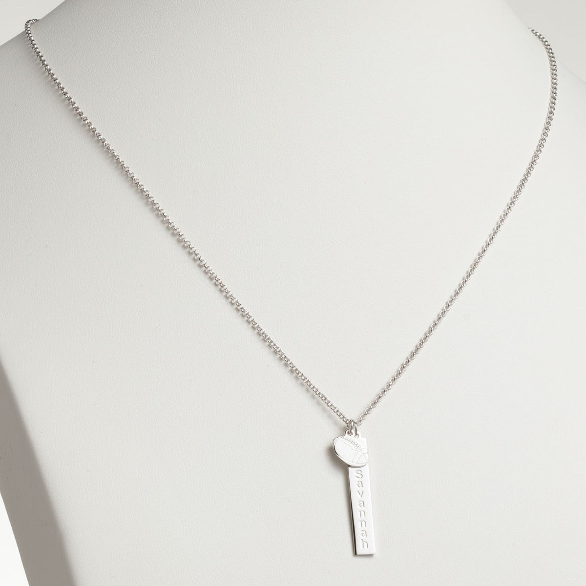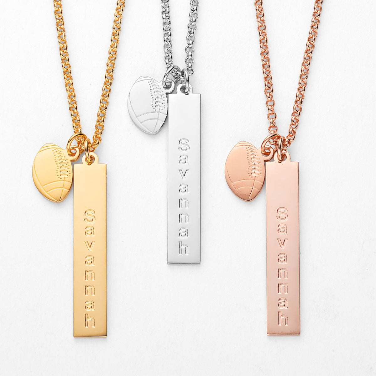 Treat the football fan in your life to a personalized charm necklace that is sure to impress. Wonderfully chic, this dazzling design showcases a football-shaped charm and space to personalize the bar with an engraved name. Fashion a unique accessory and good luck charm they'll love to wear to every game when you personalize!