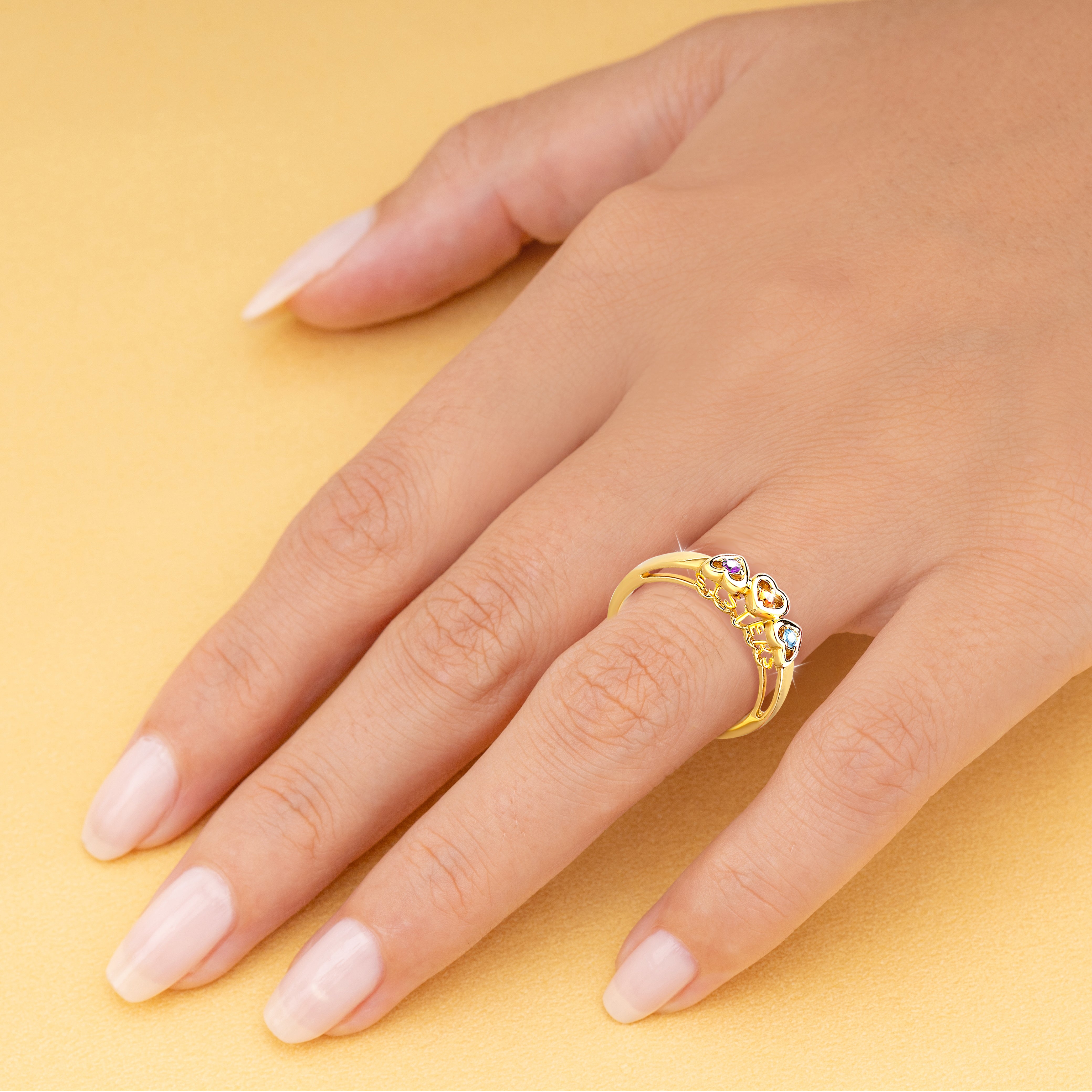 Who knows what's in your heart better than a sister? Limoges celebrates that special bond with the heartwarming, personalized Sisters Birthstone Ring. The Austrian Crystal stones of up to 7 sisters are set amid linking hearts of glowing 14K Gold plate, complete with the secret "Sisters" message along the side.