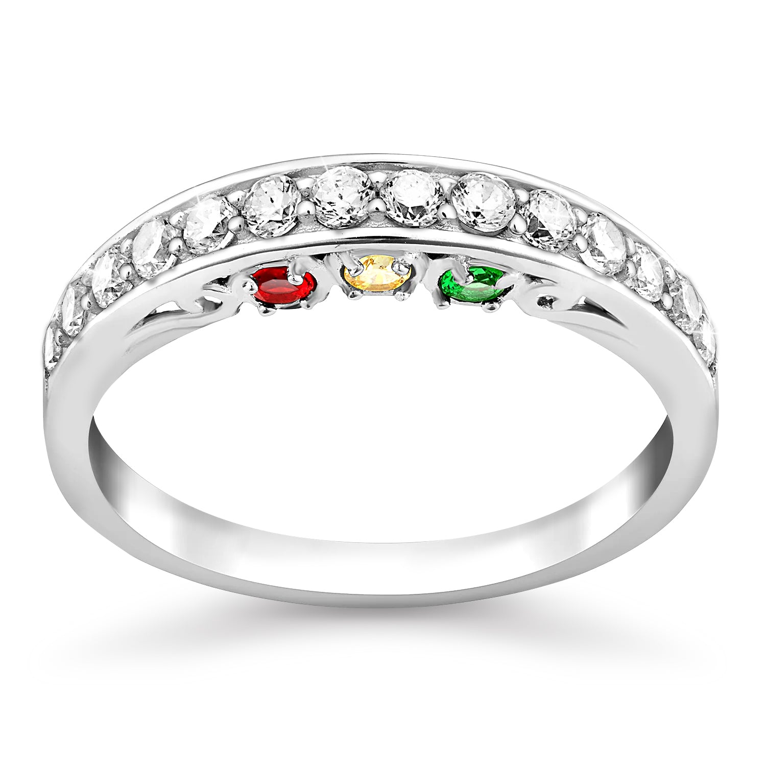 Sterling Silver Family Hidden Birthstone Ring with White Topaz