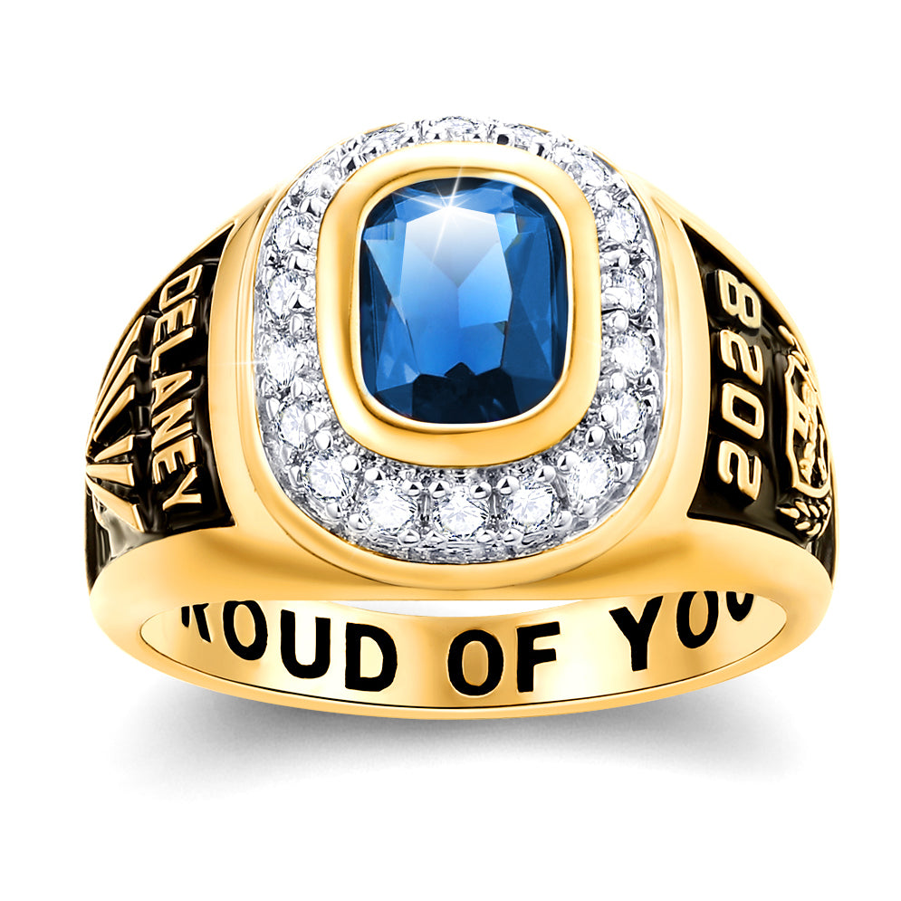Women's 14K Gold Plated CZ Encrusted Personalized Top Class Ring