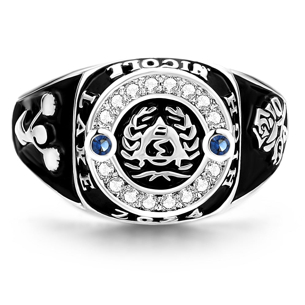 Women's CZ Multiple Graphics Traditional Birthstone Class Ring